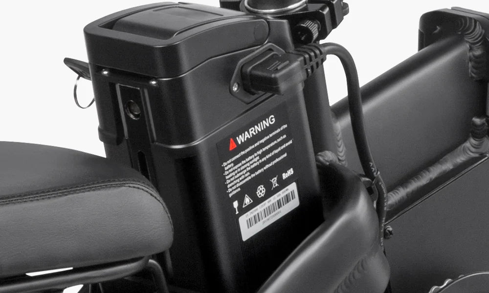 - Entnehmbarer Akku: Der 48V 7.5Ah Lithium-Ionen-Akku bietet eine Reichweite von bis zu 40 km. Lade den Akku separat für zusätzlichen Komfort auf.